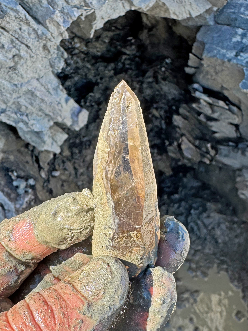 Drei Tage arbeitete ich an einer Stelle und konnte viele Rauchquarze bergen, hier Tag 1 :-)